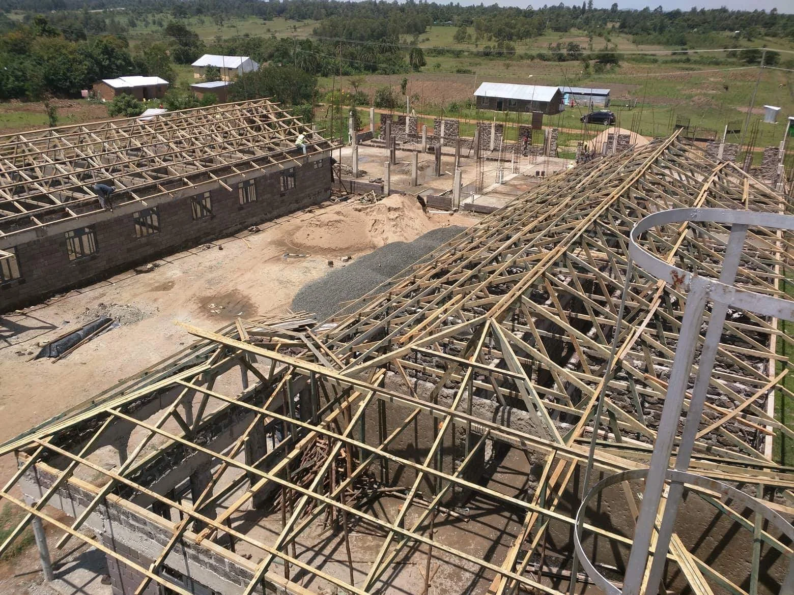 The dormitory wings have been concreted and the walls are going up. The main building is being prepped for concrete.